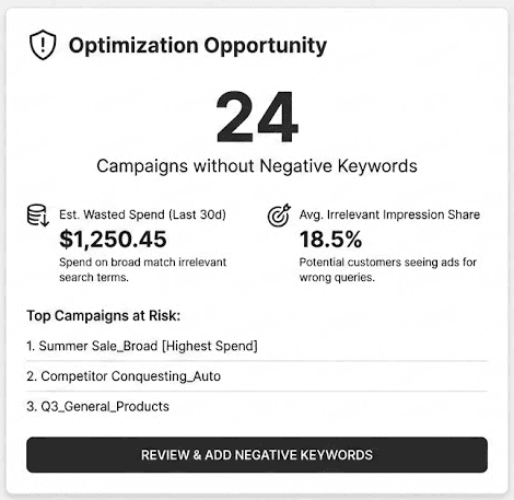 Spot high-ACoS keywords, zero-sale search terms, and leaking campaigns fast, so you scale only the ads that drive profitable sales.