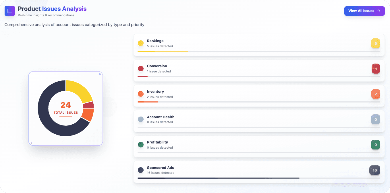Instantly see what’s hurting your rankings, profits, and ads in one clean dashboard. No digging, just clear answers on what needs fixing now.
